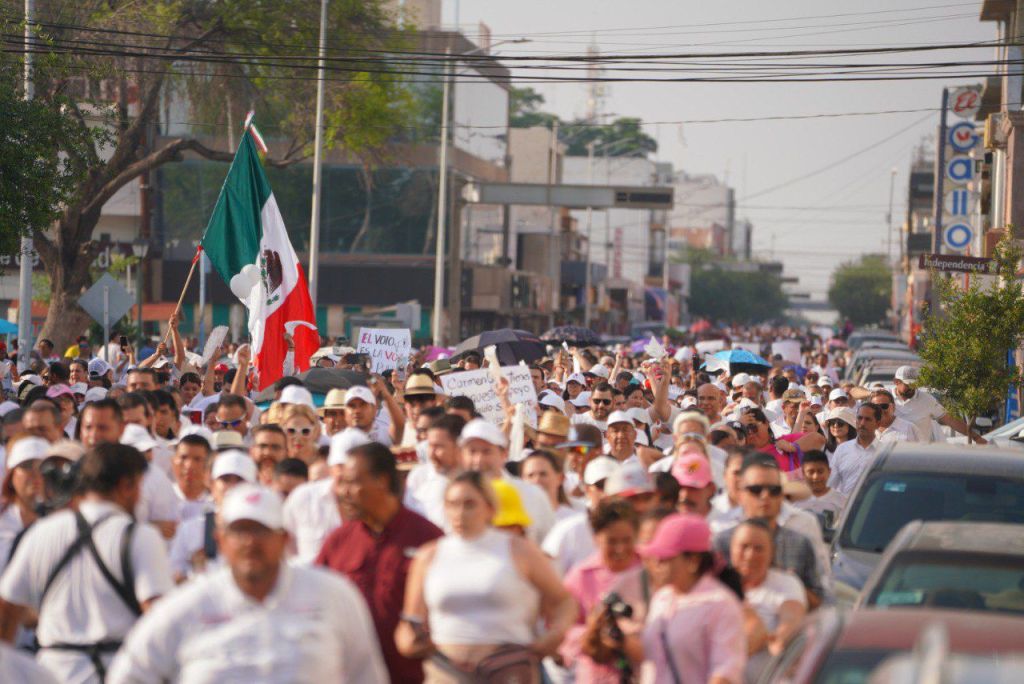 Desde la plaza Miguel Hidalgo con vestimenta en color blanco miles de ciudadanos, entre líderes empresariales, religiosos, integrantes de asociaciones civiles, maestros, jóvenes, amas de casa, trabajadores entre otros se dirigieron al monumento a Los Fundadores junto a la candidata Carmen Lilia quien exhortó a la población a ser libres de participar democráticamente este 2 de junio.