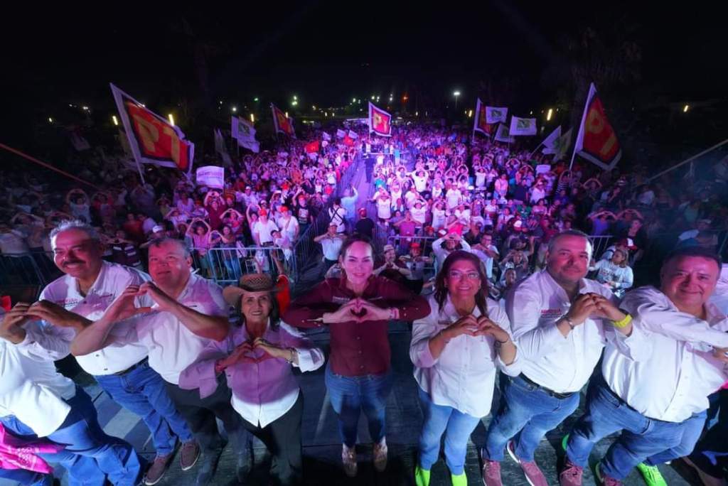 La pasión se desbordó cuando aparecieron en el escenario las candidatas de la alianza que conforman los partidos políticos MORENA, Partido Verde y Partido del Trabajo, a la presidencia municipal, Carmen Lilia Canturosas Villarreal, y a la diputación local por el Distrito II, Ana Laura Huerta Valdovinos, así como los integrantes de la planilla de síndicos y regidores.