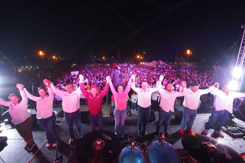 Al grito de ¡presidenta, presidenta! más de 5 mil vecinos de la colonia Francisco Villa y alrededores recibieron a la candidata a presidenta municipal Carmen Lilia Canturosas Villarreal, de la coalición Morena, Verde y PT en su tercer cierre de campaña distrital.