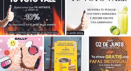 Propietarios de diferentes establecimientos comerciales incentivan a votar el 2 de junio, al ofrecer productos y servicios gratis o descuentos en sus negocios a las personas que muestren el pulgar con tinta indeleble, señal de que ya sufragaron.