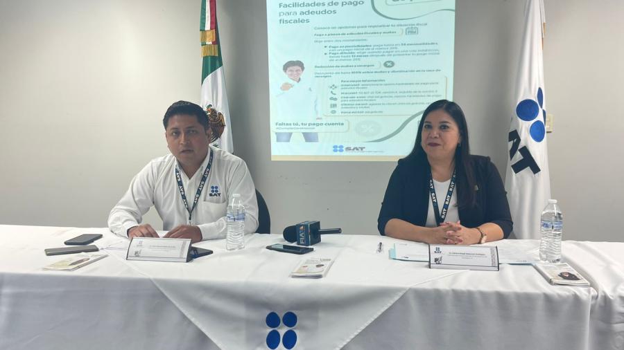 En rueda de prensa, la Administradora Desconcentrada de Recaudación, Adriana Betancourt Rodríguez, y el Administrador Desconcentrado de Servicios al Contribuyente, Víctor Zeferino de la Cruz, presentaron los pormenores de este programa.