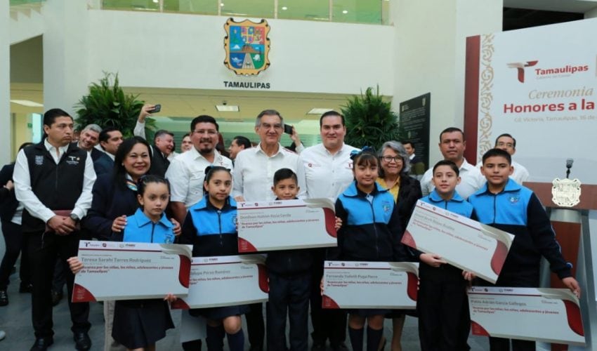 Al presidir la ceremonia cívica de honores en el Congreso del Estado, el gobernador también entregó de manera simbólica las Becas Avanza por las Niñas, los Niños, Adolescentes y Jóvenes de Tamaulipas, que en todo el estado benefician a un total de 28,883 alumnos y alumnas de primaria y secundaria por un monto de 72 millones 207 mil 500 pesos.