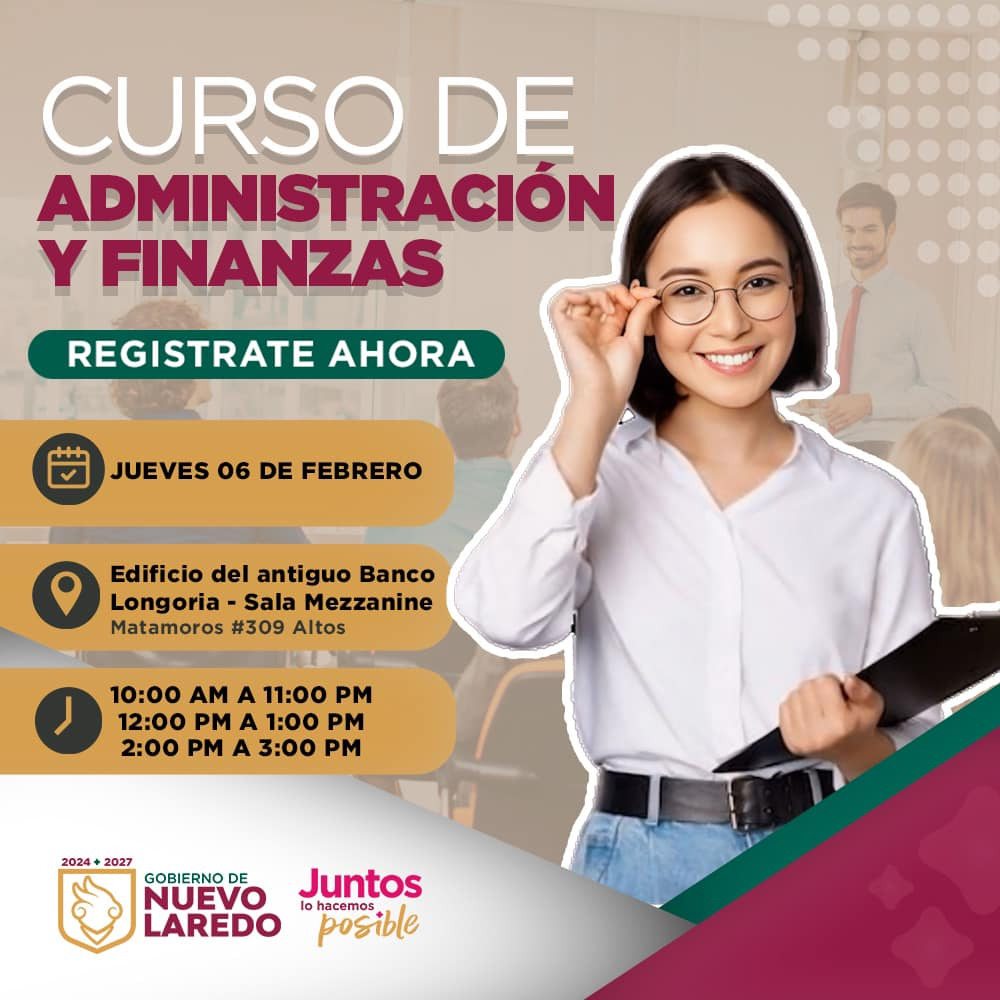 Con el objetivo de fortalecer el ecosistema emprendedor y brindar herramientas clave para el crecimiento de los negocios locales, el Gobierno de Nuevo Laredo, en coordinación con la Dirección de Comercio, Empleo y PYMES, invita a todos los emprendedores y emprendedoras de la ciudad a participar en el curso gratuitos de Administración y Finanzas, que se llevará a cabo el próximo jueves 06 de febrero de 2025.