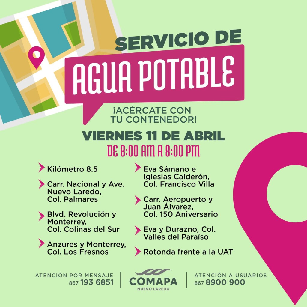 COMAPA, estará brindando el servicio de pipas en los siguientes puntos del sur de la ciudad: