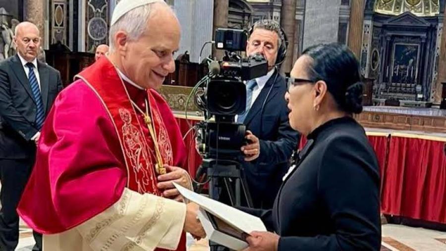 En representación del país, la secretaria felicitó al Papa León XIV y resaltó que la vocación de ayuda hacia los migrantes y la cercanía con las comunidades indígenas serán de gran importancia durante el pontificado del primer líder católico estadounidense.