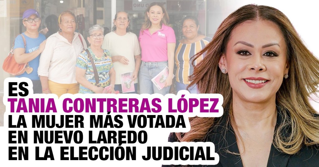 En una jornada histórica para la vida democrática y judicial de Tamaulipas, Tania Contreras López, candidata a magistrada del Supremo Tribunal de Justicia del Estado, se consolidó como la gran ganadora de esta primera elección judicial, al obtener un contundente respaldo ciudadano en el municipio de Nuevo Laredo.