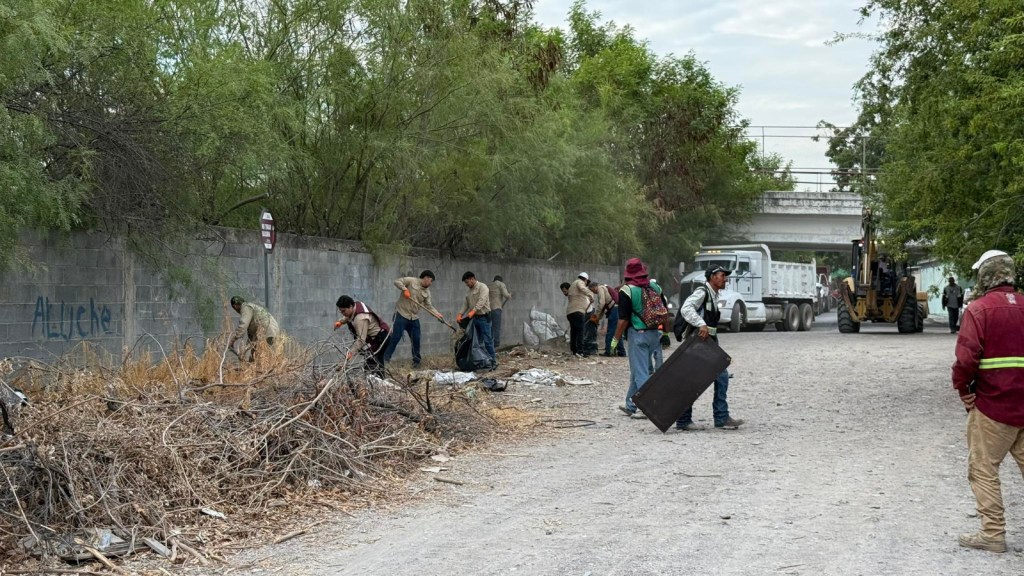 Con apoyo de la Dirección de Servicios Públicos Primarios, se desplegó personal operativo, además de dos camiones de volteo y dos retroexcavadoras, con los cuales se logró retirar ramas, escombro, colchones y basura acumulada en la zona.