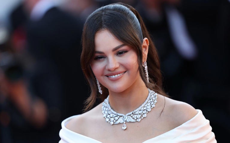 Cabe destacar que Selena sostiene un ramo pequeño de flores blancas, lo que complementa la estética minimalista y delicada del look.