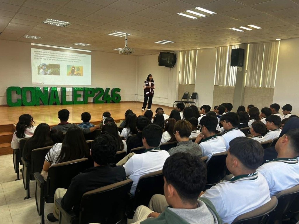 En el marco del Día Mundial de la Alimentación, el Instituto Municipal para el Desarrollo de la Juventud (IMJUVE) llevó a cabo una conferencia dirigida a más de 70 estudiantes del CONALEP, con el propósito de concientizar sobre la importancia de mantener una alimentación balanceada y saludable.