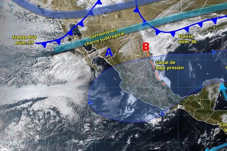 Durante el fin de semana, el SMN pronostica que el frente frío 37 recorrerá el noreste del país, generando lluvias puntuales fuertes en San Luis Potosí, Querétaro, Hidalgo y Veracruz, además de lluvias y chubascos en Nuevo León, Tamaulipas y Puebla.