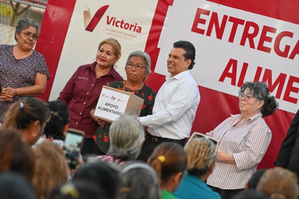 «Tenemos claro que un gobierno cercano, es un gobierno que escucha, sensible, responsable y que actúa en beneficio de las familias victorenses» dijo en su mensaje Gattás Báez al hacer entrega de paquetes alimentarios con productos de la canasta básica.