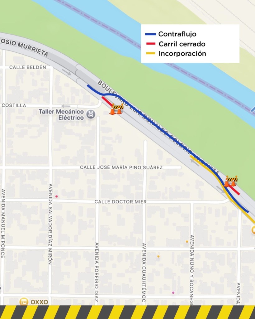 El Gobierno Municipal de Nuevo Laredo informa a la ciudadanía que, como parte de los trabajos del Colector Ribereño, a partir del miércoles 29 de abril desde las 9:00 de la mañana se mantiene el cierre parcial de un carril en sentido de norte a sur sobre el bulevar Luis Donaldo Colosio, en el tramo comprendido entre la calle 15 de junio y la calle González.